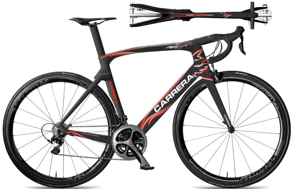 De geometrie van de achterdriehoek, de goedgekeurde integratieoplossing voor de cockpit en de perfecte gewichtsbalans maken de AR-01 een product zonder compromissen: licht, stijf, aerodynamisch, uiterst nauwkeurig en efficiënt; in een woord een echte racemachine. De AR-01 met Carrera rijeigenschappen bereikt een nooit eerder geëvenaard veiligheidsniveau dat onmiddellijk waargenomen wordt op elke route. De totale stijfheid is opmerkelijk en laat miets aan de verbeelding over. De lage inzet van de achtervork maakt de achterzijde van graniet, die zeker wordt gevoeld bij hoge snelheid. AR01 accellereert zonder energieverspilling, dankzij een zeer stabiel en evenwichtig frame. Bergop geeft de globale stijfheid van het frame een heel goed gevoel, elke trap verzendt 100% kracht naar de wielen, zonder te buigen van welke aard dan ook, ook niet in de hoge snelheid bochten. De belangrijkste driehoek heeft een oversized buis sectie en het zijprofiel is compact en minimalistisch; de buis is bewust hoog gehouden voor aerodynamische redenen. Deze constructieve oplossingen geven grote stabiliteit en tegelijkertijd bieden ze ongeëvenaarde rijeigenschappen ook in technische afdalingen. De geïntegreerde pen in het frame maakt het mogelijk de kabels te voegen in het frame, en biedt dus een zeer schone en essentiële lijn. De achterzijde is erg stijf, maar dankzij het gebruik van nieuwe vezels van koolstof (High modulus en speciale harsen) en een bepaald molding proces is het gelukt om zelfs de kleinste onregelmatigheden van het terrein te absorberen. De splitsing in het nieuwe ontwerp is nauwkeurig en maakt zeer responsief remmen mogelijk, zelfs gewelddadig. CARRERA AR01 maakt de montage mogelijk van drie verschillende oplossingen voor de remmen, allemaal met geïntegreerde kabels: een fundamentele voordeel voor volledige aanpassing van uw racemachine.