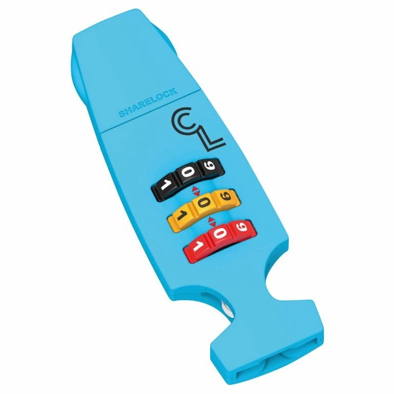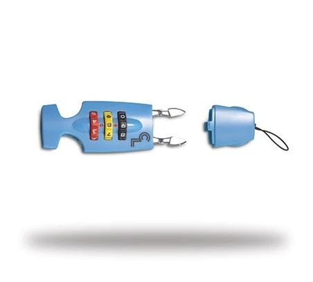 - Schuif het male-gedeelte van de helmsluiting aan één zijde van het slot en het female-gedeelte van de sluiting aan de andere zijde. Draai aan het nummerslot, zodat je zeker weet dat het slot niet kan openen