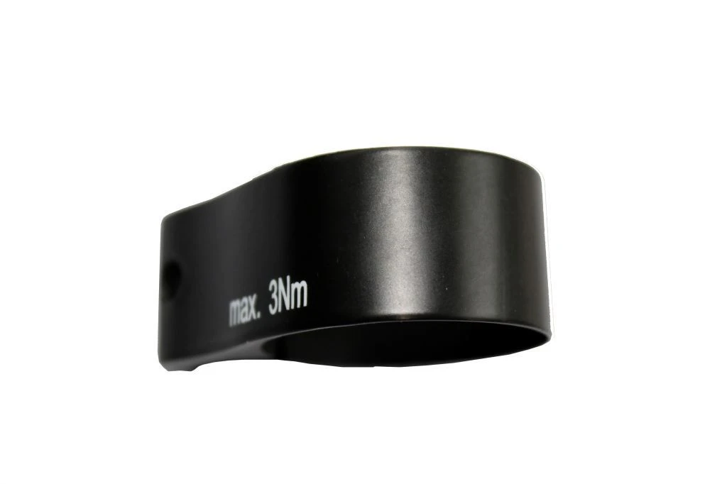 Voordelige voorderailleurklem van carbon, licht en stevig.