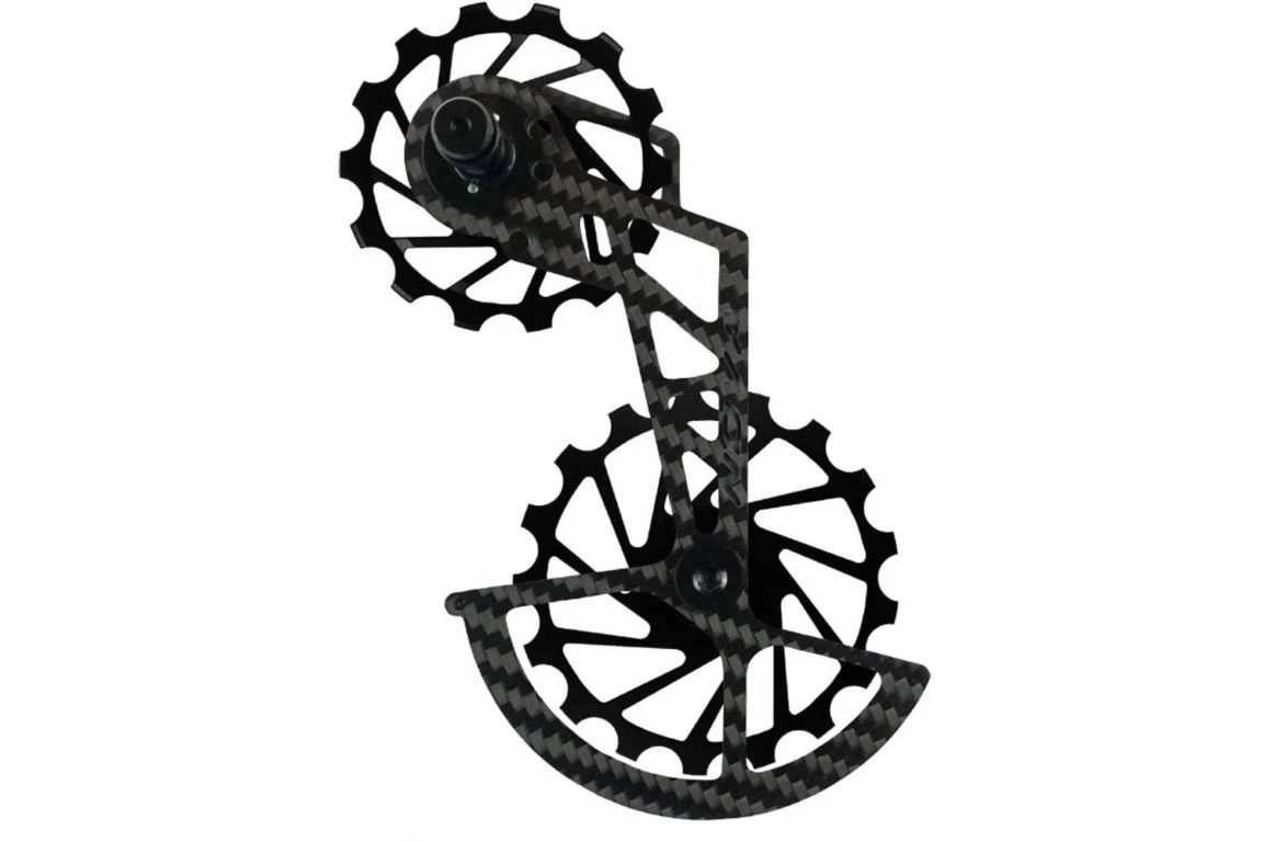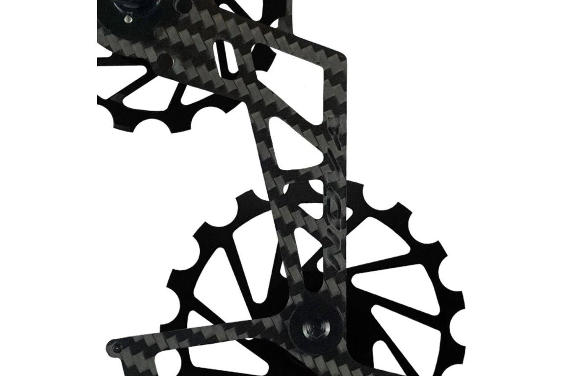 - Dit product bestaat uit een carbonkooi en twee 7075 aluminium pully’s (14 & 17 tanden) met volledig keramische verzegelde lagers.
