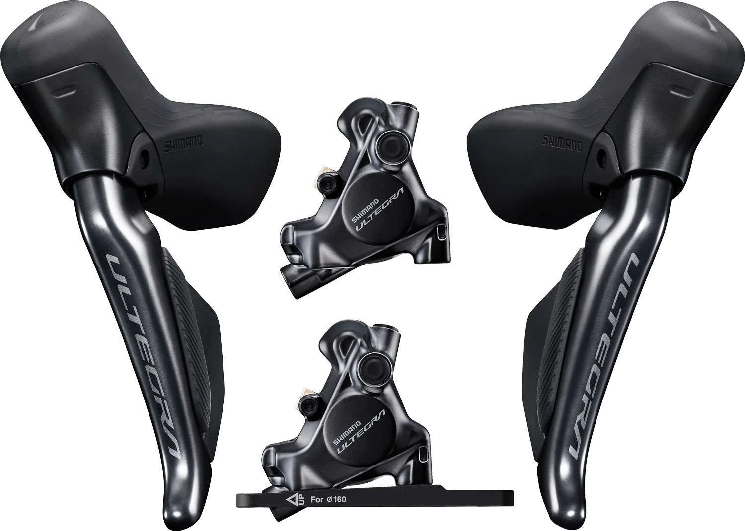Wordt geleverd als (voorgemonteerde) set voor & achter hydraulische Di2 2×12 speed Ultegra shifters en remklauwen excl. remschijven.