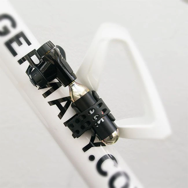 De Airbuster CO2-fietspomp is een extreem lichte oplossing voor elke wedstrijd. Hij bestaat uit een aluminium behuizing met geïntegreerd drukdoseerventiel, koudebescherming en een stofbeschermkap. Met behulp van de draaidoseerknop kan de druk gemakkelijk worden ingesteld.