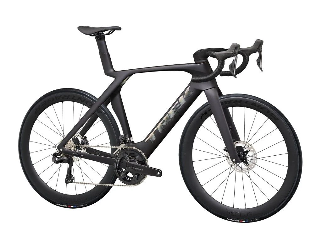 - Voorvork: Madone KVF full carbon, taps toelopende carbon stuurbuis, interne remkabelgeleiding, flat-mount schijfrembevestiging, carbon dropouts, 12 x 100 mm steekas