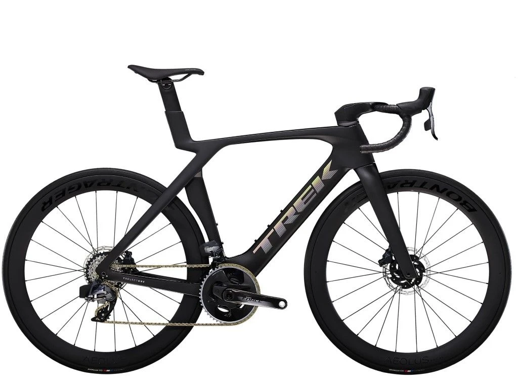 - Voorvork: Madone KVF full carbon, taps toelopende carbon stuurbuis, interne remkabelgeleiding, flat-mount schijfrembevestiging, carbon dropouts, 12 x 100 mm steekas